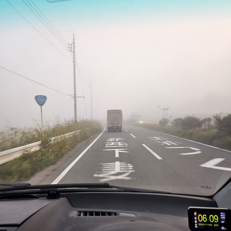 道中、霧が酷く、数メートル先も見えないくらいの濃霧。