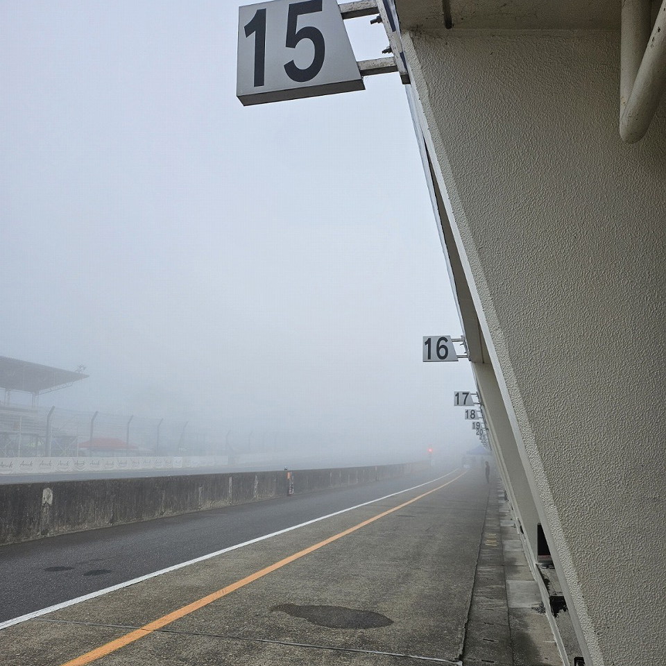 この霧は筑波サーキットに着いても変わりませんでした。結局コースインが9時30分になりました。
