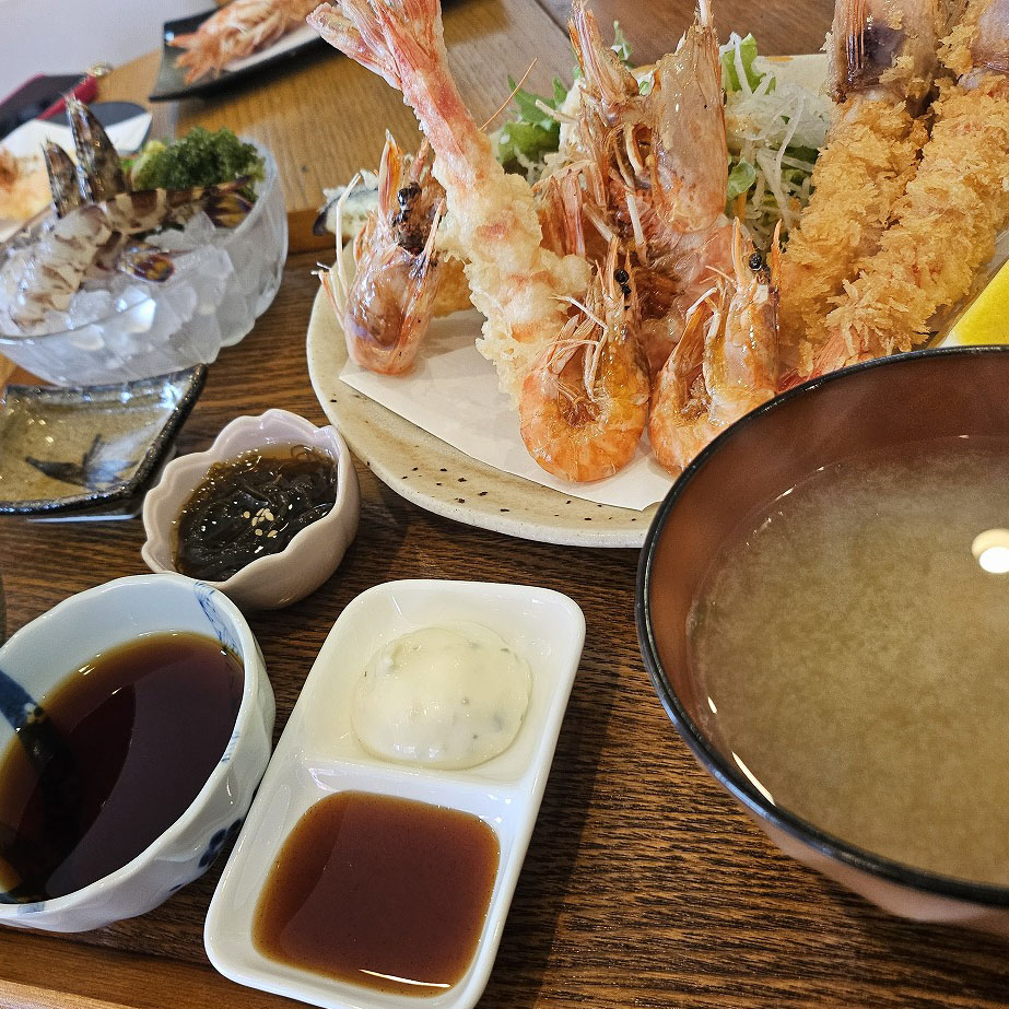 この日は定番の定食に加えて、おいエビもいただいた。 ぷりぷりの食感と濃い旨みは、やはりここならでは。